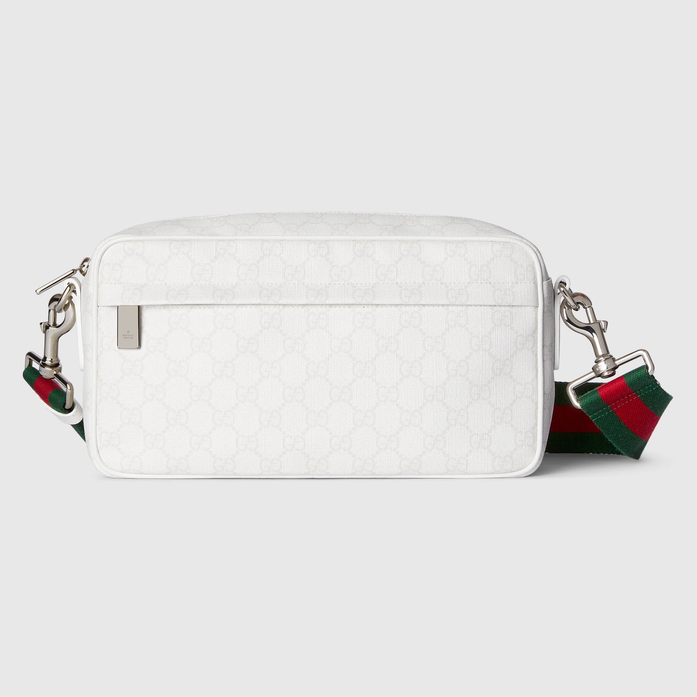 The House continues to explore its connection to the world of tennis that began in the 1970s, introducing soft GG Supreme on distinctive silhouettes. This crossbody bag is presented in soft GG Supreme with a tonal leather trim and an adjustable Web shoulder strap. - White soft GG Supreme - White leather trim - Green moire lining - Inside: 1 zip pocket - Outside: 1 zip pocket - Detachable and adjustable Web shoulder strap with 37.4" - 57" drop - Zip closure - 11.4"W x 6.2"H x 2.9"D - Weight: 1.5lbs, approximately - Fits iPhone Pro Max/Plus, bi-fold wallet or card case, and Airpods