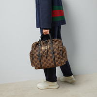 Introduced for Cruise 2024, the main characteristic of the new ripstop recycled polyester is the GG logo. The fabric is lightweight thanks to the play of yarns and of a high quality, allowing styles to remain unlined. The final result is technical yet elegant accessories that offer practicality with a modern feel. Here it appears in ebony and beige atop this tote, complete with a Gucci Made in Italy patch. - Ebony and beige GG ripstop recycled polyester - Black Demetra trim—crafted from at least 70% of vegetable raw materials from renewable sources (viscose, wood pulp, bio-based polyurethane) - Gucci Made In Italy patch - Inside: 1 zip pocket - Outside: 2 zip pockets - Top handle with 5.5" drop - Drawstring closure - 13.4"W x 12.6"H x 6.3"D - Made in Italy - Weight: 2lbs approximately