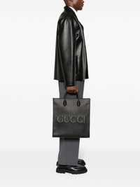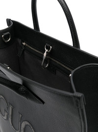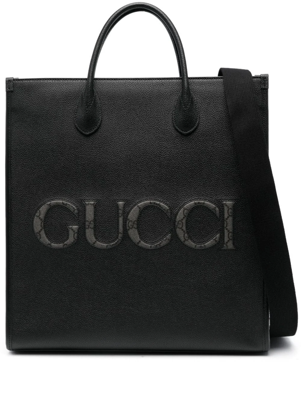 logo-embossed leather tote bag Highlights - Black - Leather - Grained texture - Embossed logo to the front - Gg supreme canvas - Two rolled top handles - Adjustable detachable shoulder strap - Hook fastening - Main compartment - Internal zip-fastening pocket - This piece comes complete with a protective dust bag. Made in Italy Composition Outer: Leather 100% SIZE & FIT Measurement DEPTH 4.72 in(12 cm) HANDLE 3.54 in(9 cm) HEIGHT 15.35 in(39 cm) STRAP 55.9 in(142 cm) WIDTH 14.37 in(36.5 cm)
