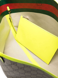 medium Totissima tote bag Highlights - Taupe/fluorescent yellow - Gg supreme canvas - Open top - Two flat top handles - Contrasting leather trim - Main compartment - Removable pouch - Full lining - This piece comes complete with a protective dust bag. Made in Italy Composition Outer: Calf Leather 100% SIZE & FIT Model measurements Height 6 ft 1 in(1.85 m) Bust/Chest 35.82 in(91 cm) Hips 37.79 in(96 cm) Waist 29.13 in(74 cm) Measurement DEPTH 9.84 in(25 cm) HANDLE 8.26 in(21 cm) HEIGHT 11.81 in(30 cm) WIDTH 19.68 in(50 cm)