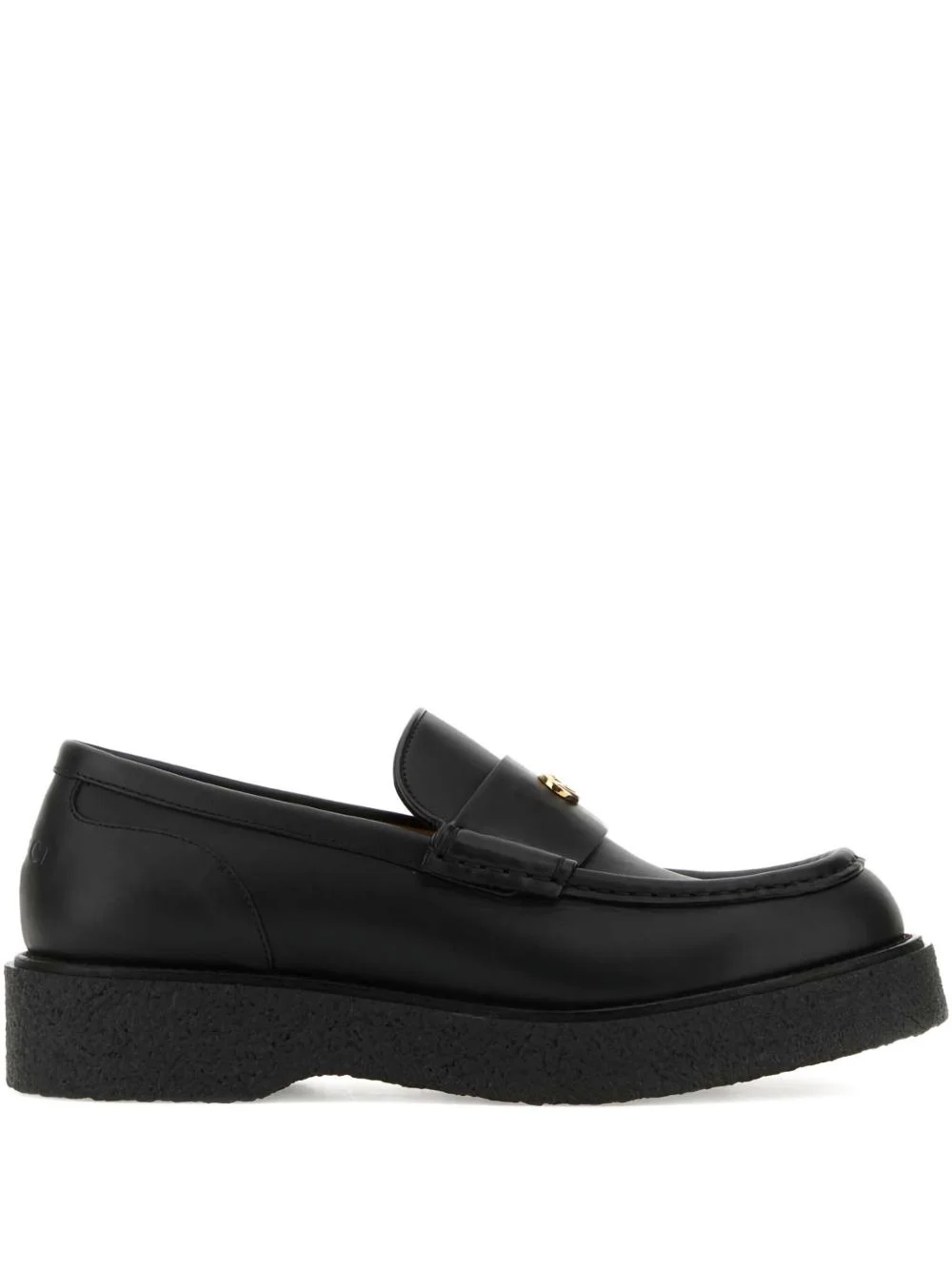 Menen Interlocking G-plaque loafers Highlights - Black - Calf leather - Smooth grain - Signature interlocking g logo plaque - Branded heel counter - Round toe - Slip-on style - Speckled sole - Branded leather insole - Leather lining - This piece comes complete with a protective dust bag. Made in Italy Composition Outer: Calf Leather 100% Sole: Rubber 100% Lining: Calf Leather 100% SIZE & FIT Measurement Sole height 1.18 in(3 cm) HEEL 1.77 in(4.5 cm)