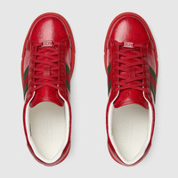 Since its debut, the Ace sneaker has become a mainstay of the House's narrative. A new version of the characteristic low-top silhouette is presented in the latest collection, featuring unique details. It's presented here in red GG Crystal canvas, while a metal “ACE” tag shines atop the lace-up closure. Gucci's distinctive green and red Web stripe completes the style. - Red GG Crystal canvas - Green and red Web - 'ACE' metal tag - Tonal rubber sole - Additional pair of laces included - Lace-up closure - Low heel - 1.2" height - Made in Italy