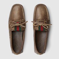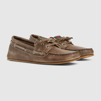 Drawing inspiration from the boat shoe, this carefree design blends an extremely lightweight upper with a comfortable sole. Crafted from washed-effect leather, it is complete with the Web detail for an emblematic touch. - Brown washed-effect leather - Unlined - Web detail on the tongue and back - Laced eyelets on shoe collar - Rubber sole - Lace-up closure - Flat - Height: 0.2"