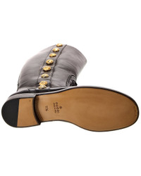 The House monogram is celebrated in new ways each season as a tribute to both the past and future. This pair of boots is crafted in black leather and defined by the bee and Double G buttons, adding a subtle logo feel. - Black leather - Men's - Bee and Double G buttons - Loop at the back - Lace-up detailing - Leather sole - Low heel - Made in Italy