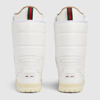 Gucci Altitude, the House's first winter sportswear collection, combines advanced performance and signature codes. This men's boot is defined by bold House codes. The green and red Web appears on the tongue and detailing, bringing a signature touch to the performance-inspired silhouette. - White leather - Green and red Web tongue - Padded Web detail - Web puller tag - Rubber sole - Lace-up - Made in Italy