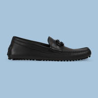 Gucci Love Parade is an exploration of self-expression and everlasting glamour, creating a land where neither past nor future reside.This pair of drivers speaks to the fashion show's theme by revisiting historical elements of the House. A recognizable monogram, the shoes are crafted from black leather with tonal Interlocking G hardware. - Black leather - Men's - Resin Interlocking G - Rubber sole - Flat - Made in Italy
