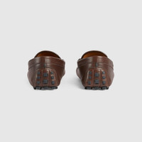 A reiteration of the classic style, the driver is presented in a shade of dark brown leather with a flexible construction. In a mix of emblematic House details, the driving shoe is defined by the Web and the Interlocking G Horsebit enriched with colored enamel. - Cocoa soft calf leather - Men's - Blue and red Web - Enameled Interlocking G Horsebit - Rubber sole - Flat - .4" heel height - Made in Italy