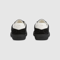 Crafted in suede, this pair of men's sneakers is defined by signature Gucci symbols such as the Interlocking G logo. Insert detail in GG canvas enhances the sneaker's style, casual yet unique. - Black suede - GG canvas insert detail - Leather lining - Interlocking G logo - Additional pair of laces included - Lace-up closure - Flat - Heigth: 0.1"
