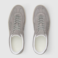 In the Fall Winter 2025 collection, inspired by retro basketball shoes from the '70s, these sneakers are defined by signature Gucci symbols such as the Interlocking G logo. This model appears in suede and leather trim. - Grey suede - Leather trim - Interlocking G logo - Rubber sole - Additional pair of laces included - Lace-up closure - Flat
