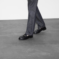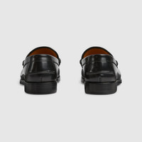 The Pre-Fall selections spotlight essential silhouettes with emblematic details. This slip-on style for men is crafted from black debossed GG leather, with the House's signature, highlighting the Horsebit hardware. - Black leather with debossed GG leather detail - Men's - Silver-toned hardware - Horsebit - Leather sole - Low heel - 0.6" height - Made in Italy