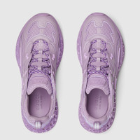 In the Spring Summer 2025 collection, this Gucci cub3d sneaker blends innovative materials and construction. The upper is a mix of Demetra and mesh, featuring details created with a high frequency technique, while the sole combines an EVA-filled interior and TPU on the outside, complete with a 3D Interlocking G pattern. - Light purple Demetra—crafted from at least 70% of vegetable raw materials from renewable sources (viscose, wood pulp, bio-based polyurethane) and mesh - Men's - Fabric lining - Bi-material sole - Interlocking G pattern with 3D effect - Lace-up closure - Low heel - 1.8" height - Made in Italy