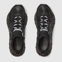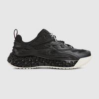In the Spring Summer 2025 collection, this Gucci cub3d trainer blends innovative materials and construction. The upper is a mix of Demetra and mesh, featuring details created with a high frequency technique, while the sole combines an EVA-filled interior and TPU on the outside, complete with a 3D Interlocking G pattern. - Black Demetra—crafted from at least 70% of vegetable raw materials from renewable sources (viscose, wood pulp, bio-based polyurethane) and mesh - Men's - Fabric lining - Bi-material sole - Interlocking G pattern with 3D effect - Lace-up closure - Low heel - 1.8" height - Made in Italy