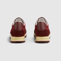 Influenced by classic sneakers from the '70s, the Screener sneakers—named for the defensive sports move—feature the Web stripe on the side and the vintage Gucci logo. Here the emblematic style is presented in Gucci Rosso Ancora red canvas and defined by a tonal leather trim. - Gucci Rosso Ancora red Original GG canvas - Leather trim - Rubber outsole with Interlocking G and Gucci script logo - Interlocking G details on the eyelets - Tongue with 3D Gucci script logo and Interlocking G, created with a high-frequency embossing process - Lace-up closure - Height: 0.9" - Made in Italy