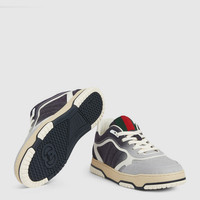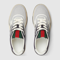 The Re-Web sees Gucci’s heritage stripes as a bold statement detail on a contemporary silhouette. This pair is crafted from GG denim with a leather trim. Defined by multiple iconic details, this new sneaker takes center stage with the bold green and red Web tongue. - Gradient dark blue GG denim - Men's - White leather trim - Leather lining - Gucci script and Interlocking G Web tag - Rubber outsole with Interlocking G and Gucci script logo - Interlocking G details on the eyelets - Tongue with Web - Additional pair of laces included - Lace-up closure - Low heel - Height: 1.1" - Made in Italy - This style runs big, we recommend sizing down