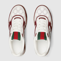 The Re-Web's contemporary silhouette is presented in many color combinations, highlighting Gucci’s emblematic details. This pair is crafted in pebbled leather with a GG outline motif, and the signature green and red Web trim completes the style. - White GG outline pebbled leather - Gucci Rosso Ancora red leather trim - Fabric lining - Gucci script and Interlocking G Web tag - Rubber outsole with Interlocking G and Gucci script logo - Interlocking G details on the eyelets - Web on the tongue - Additional pair of laces included - Lace-up closure - Flat - Height: 0.4" - Fits true to size