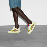 Inspired by the summer spirit and beach clubs on the Italian coast, this item is part of Gucci Lido. The first sneakers envisioned by Sabato De Sarno for the House, the Re-Web sees Gucci’s heritage stripes as a bold statement on a contemporary silhouette. This pair is crafted from the iconic Original GG canvas and white leather. Defined by iconic details, this new sneaker takes center stage with the bold green and red Web tongue and florescent yellow leather trim. - Beige and ebony Original GG canvas - Men's - Fluorescent yellow leather trim, treated with a specific process to make it soft and shiny, while the grainy texture is given by embossing - Gucci script and Interlocking G Web tag - Rubber outsole with Interlocking G and Gucci script logo - Interlocking G details on the eyelets - Tongue with Web - Additional pair of laces included - Lace-up closure - Low heel - 1.3" height - Made in Italy - These shoes run big, we recommend sizing down half a size