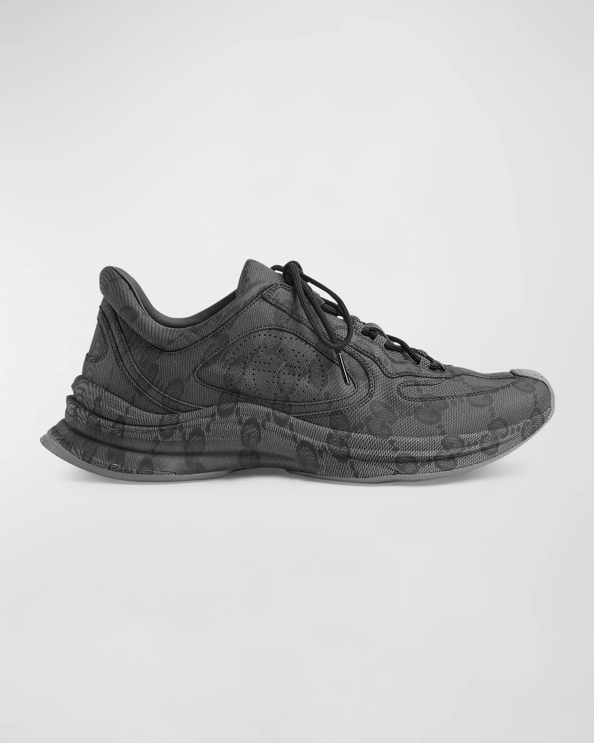 - Gucci fashion sneakers in leather with an allover GG water transfer print - Chunky flat heel - Reinforced round toe - Lace-up vamp - Round shoelaces - Padded collar - Heel logo lettering - GG-printed midsole - Rubber outsole - Made in Italy