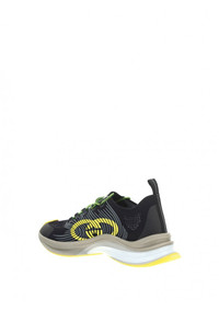 Reminiscent of running shoes, this pair of sneakers is strongly inspired by the sporting world. The style is presented in a technical knit fabric in black and takes on a strong logo feel thanks to a rubber Interlocking G detail. - Black technical knit fabric - Men's - Rubber Interlocking G detail - Gucci at back outersole - Bi-color rubber sole - Lace-up closure - Low heel - Made in Italy - Tab detail at the back