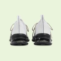 Designs inspired by the sporting world are interpreted through the Gucci lens with standout logo details. This pair of streamlined sneakers is crafted from white technical knit fabric and defined by the Interlocking G. A bi-color sole completes the style with a playful note of chromatic contrast. - White technical knit fabric - Men's - Rubber Interlocking G detail - Gucci logo at back outersole - Bi-color rubber sole - Loop detail at the back - Lace-up closure - Made in Italy