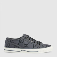 Introduced for Cruise 2024, the main characteristic of the new ripstop recycled polyester is the GG logo. The latest collection explores the archives, adding contemporary touches to vintage styles as a tribute to both the brand's past, present and future. - Dark grey and black GG ripstop recycled polyester - Men's - Gucci Tennis 1977 label - GG motif at the sole - Rubber sole - Additional pair of laces included - Low heel - Made in Italy