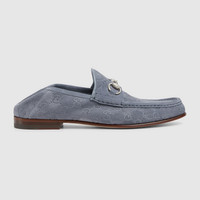 Defined by an elegant silhouette, this man's loafer is crafted in refined GG suede, an emblematic and modern material. The style is completed by the unique Horsebit with a silver finish. - Grey GG suede - Men's - Silver-toned hardware - Leather lining - Horsebit - Leather sole - Height: 0.5" - Made in Italy