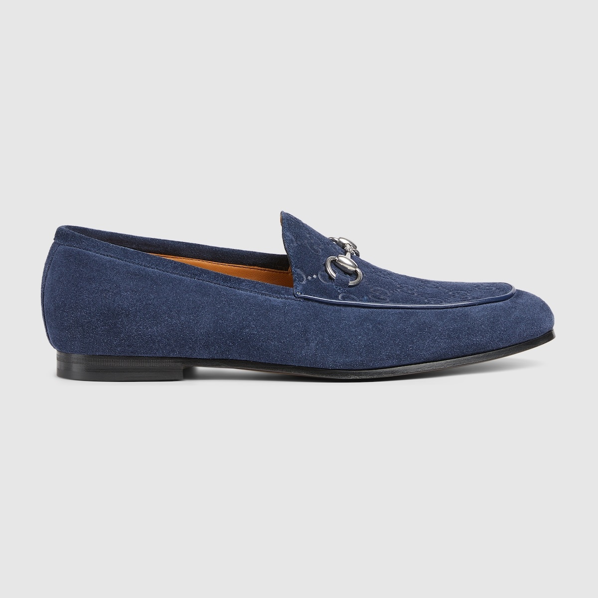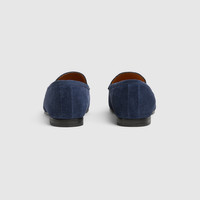 Inspired by the summer spirit and beach clubs on the Italian coast, this item is part of Gucci Lido. Defined by an elegant silhouette, this man's loafer is crafted in refined leather and is completed by the iconic Horsebit with a silver finish. - Dark blue suede - Men's - Silver-toned hardware - Horsebit - Leather sole - Flat - Made in Italy