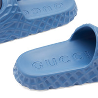 Slides are an absolute staple whatever the season, so make sure you can rely on yours with a helping hand from Gucci’s Interlocking Logo Ripple Sole Slides. Here, a tridimensional effect - inspired by water ripples - centres the House’s signature G motif across the strap, adding unmistakable style with every step. - Rubber Construction - Made in Italy