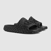 Mimicking water ripples, these slide sandals are crafted by textured rubber. A tridimensional Interlocking G logo completes the style with a signature touch. - Black rubber - Men's - Tridimensional effect Interlocking G - 1.4' heel height - Made in Italy