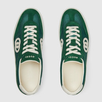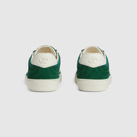 Inspired by the summer spirit and beach clubs on the Italian coast, this item is part of Gucci Lido. Crafted in suede, this pair of men's sneakers is defined by signature Gucci symbols such as the Interlocking G logo. - Green suede - Men's - Canvas insert detail - Interlocking G logo - Additional pair of laces included - Lace-up closure - Flat - Heigth: 0.1" - Made in Italy