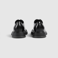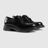Rooted in the House’s heritage, this men’s lace-up shoe has been updated with a rubber sole embellished with the GG pattern, a nod to Gucci’s signature monogram. The style is complete with textured laces and a tonal metal logo detail on the upper. - Black leather - Leather lining - Tonal metal logo detail on the upper - Insole with extra cushioning - Rubber sole with GG pattern - Lace-up closure - Flat - 0.6" height