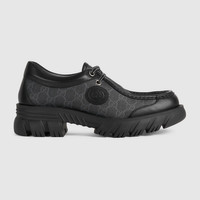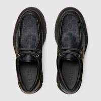 Retro silhouettes mix with heritage details to express the House's fascination for different eras. Crafted from black GG Supreme canvas, this pair of lace-up shoes is completed by an oval leather detail with the Interlocking G. The monogram motifs stem from different time periods and come together to pay homage to the Founder of the House, Guccio Gucci. - Black GG Supreme canvas - Men's - Black leather trim - Leather Interlocking G tag - Lug sole - Low heel - Made in Italy