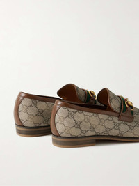 These 'Paride' loafers feature some of Gucci's most recognisable hallmarks - note the red and green webbing and gold-tone horsebit detailing. They've been made in Italy from monogrammed coated-canvas and trimmed in leather. Size & Fit - Fits true to size. Take your normal size - Only available in full sizes, go up to the nearest whole size if you take a half size - UK sizing Details & Care - Tonal-brown coated-canvas and leather (Goat), green and red webbing - Come with dust bags