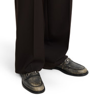 The signature loafer with Horsebit exudes classic elegance which speaks to the House's heritage. Crafted from washed-effect leather, this style is revisited with a beautifully crafted leather sole and semi-round toe. The emblematic hardware is complete with silver-toned finish. - Black washed-effect leather - Silver-toned hardware - Leather lining - Horsebit - Semi-round toe - Insole with extra cushioning - Leather sole with rubber insert - Flat - Height: 0.6"