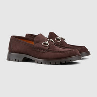 For the men's Fall Winter 2024 collection, essential silhouettes are enriched with emblematic details. Crafted from dark brown suede, this pair of loafers is defined by the signature Horsebit in silver-tone. A rubber lug sole completes the style. - Dark brown suede - Men's - Silver-toned hardware - Horsebit - Rubber lug sole - Low heel - 1.2" height