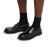 With a sleek and polished design, this loafer is crafted from black leather. A removable coin with Double G embellishes this men's style, elevating it with a blend of classic elegance and modern flair. - Black leaher - Silver-toned hardware - Removable coin with Double G - Leather sole - Low heel - Height: 0.9" - Made in Italy