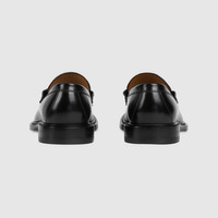 This elegant loafer is crafted in supple and smooth leather. A green and red Web detail is inlaid on the upper part, adding a distinguished yet subtle logo detail. - Black leather - Green and red Web detail - Leather sole - .9 height