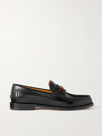 Kaveh Webbing-Trimmed Leather Loafers