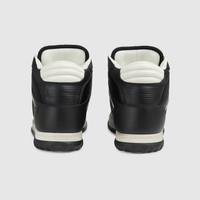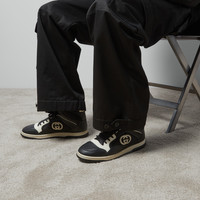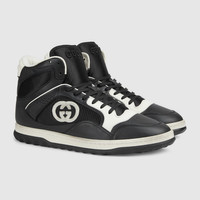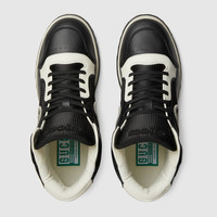 The MAC80 sneaker returns for Cruise 2024 in new variations and colors. An embroidered Interlocking G and Gucci lettering stand out against a black and off white leather base. - Black and off white leather - Men's - Black fabric insert - Interlocking G embroidery - Round toe - Rubber sole - Gucci embroidery - Additional pair of laces included - Lace-up closure - Flat - Made in Italy