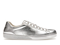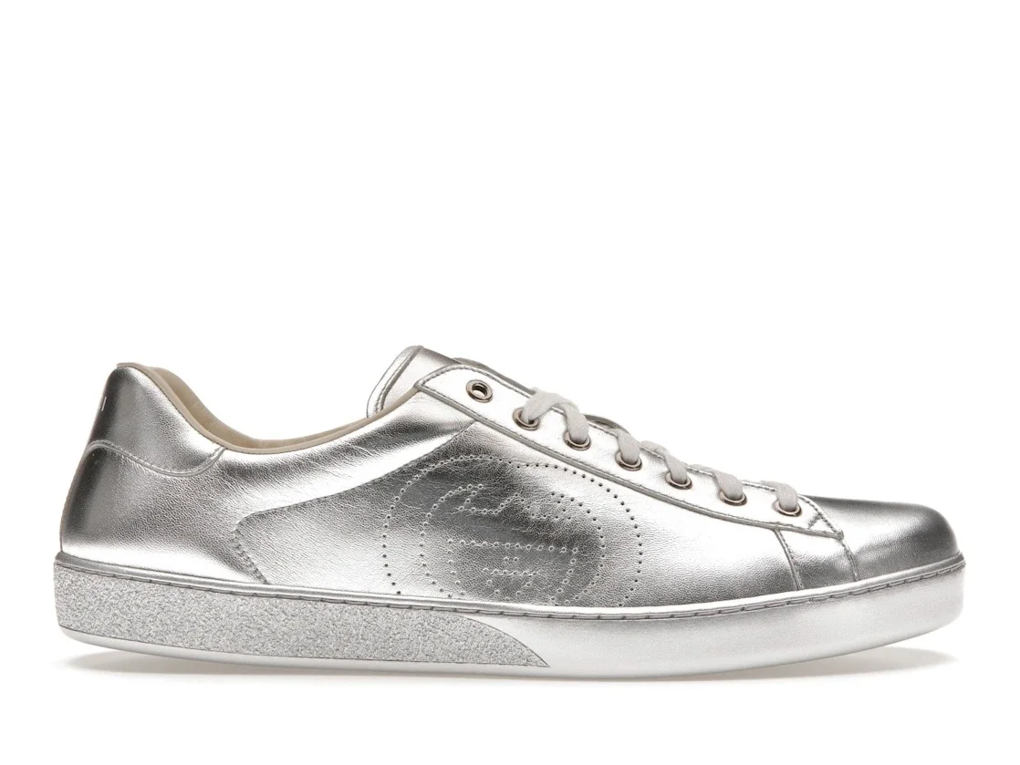 Crafted from silver metallic leather, the emblematic Ace sneaker is enhanced with a minimalist logo approach. With an intricate design, the Interlocking G is displayed on the side of the shoe, created using a perforated technique. - Silver metallic leather - Men's - Perforated Interlocking G detail - Rubber sole - Lace-up closure - .6" height - Made in Italy