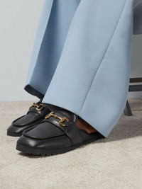 Horsebit-detail leather mules A homage to Gucci's signature codes, these mules display a gold-tone Horsebit detail. Crafted from black leather, they are complemented by a square toe. Highlights - Black - Leather - Signature horsebit detail - Gold-tone hardware - Slip-on style - Square toe - Branded leather insole - Flat rubber sole Composition Outer: Leather 100% Sole: Rubber 100% Lining: Leather 100%