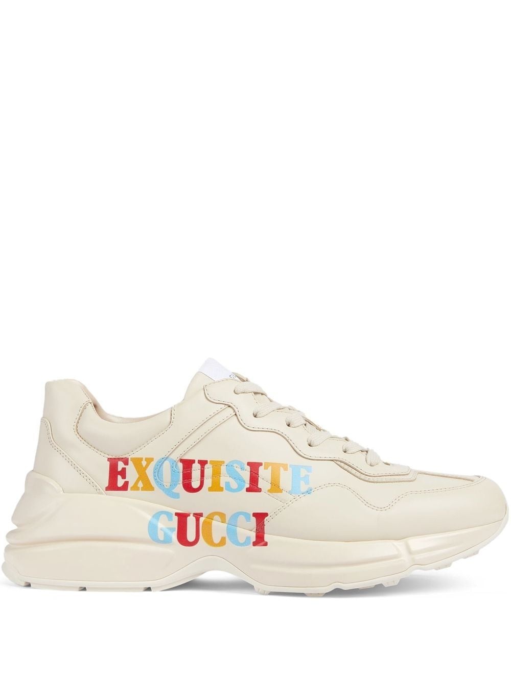 graphic-print low-top sneakers graphic-print low-top sneakers from Gucci featuring ivory white, multicolour, leather, branded leather insole, graphic print to the front, logo patch at the tongue, round toe, front lace-up fastening and ridged rubber sole. Made in Italy Composition Lining: Leather 100% Outer: Leather 100% Sole: Rubber 100%