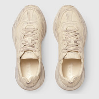 Designed with a thick sole and bulky construction, the sneaker has a retro influence in leather treated for a vintage, distressed effect. - Ivory leather treated for a vintage, distressed effect - Debossed Gucci logo at the back sole - Rubber sole - Low heel - 50mm height - Made in Italy