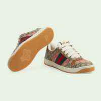 In celebration of the Year of the Rabbit, as well as the arrival of Spring, the House presents a wide-ranging selection of colorful pieces featuring various renditions of the wistful creature, as well as styles in various combinations of materials alongside the Gucci logo. Animal motifs often feature in Gucci collections, sometimes accompanied by signature emblems or floral patterns as an expression of the House's fascination with the beauty of the natural world. - Beige and ebony GG Supreme canvas and beige and hibiscus red GG Supreme canvas - Green and red Web - Brown leather details - Men's - Oval enameled detail with metal Double G - Bi-color sole - Additional pair of laces included - Low heel - 1.3" height - Made in Italy
