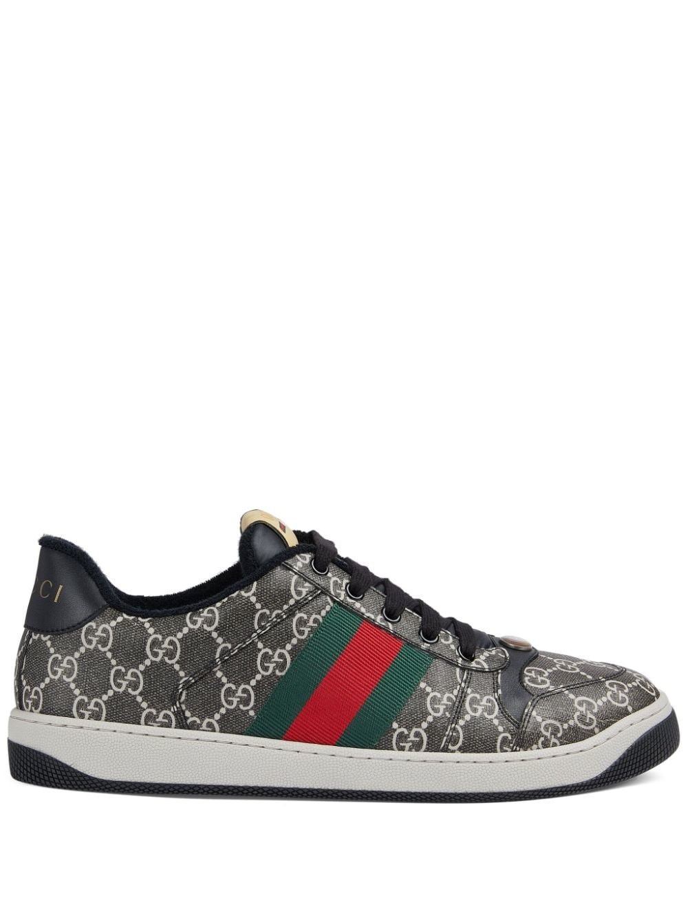 Screener GG-Supreme sneakers Influenced by classic trainers from the '70s, the Screener sneakers â named for the defensive sports move â are crafted from GG Supreme canvas embellished with a signature Web stripe on the side. Highlights - Black/multicolour - Canvas/leather - Branded leather insole - Gg supreme canvas - Side stripe detailing - Logo patch at the tongue - Logo plaque - Round toe - Front lace-up fastening - Flat rubber sole Composition Outer: Canvas 100% Lining: Fabric 100% Trims: Leather 100% Sole: Rubber 100%