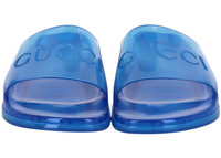 With a distinct '90s feel, these slide sandals are presented in transparent blue rubber. Reminiscent of the logo trends of the era, the shoe is completed by the name of the House. - Transparent blue rubber - Men's - Molded rubber footbed - Gucci logo - Flat - Made in Italy