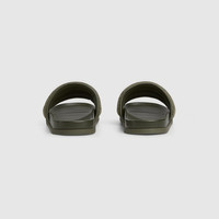 This pair of slide sandals is crafted in the signature GG canvas material, that has become an established symbol of the House since its origin. The upper part is padded and defines this stylish accessory. - Dark green padded GG canvas - Men's - Leather lining - GG rubber sole - Flat - Made in Italy