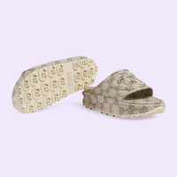 Intrinsically linked to the '90s, rubber adds a retro note to the latest collections. This pair of beige and ebony slide sandals accentuates the aesthetic with an embossed Interlocking G detail and chunky sole. - Beige and ebony GG rubber - Men's - Embossed Interlocking G - Rubber sole - Low heel - 1.6" height, based on a size 43(IT) - Made in Italy