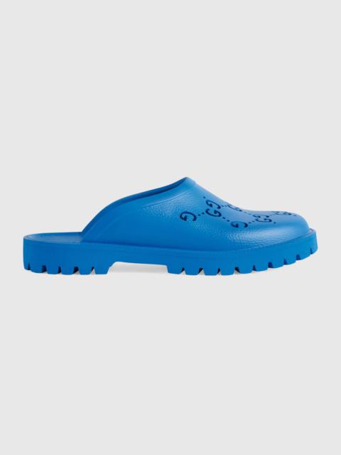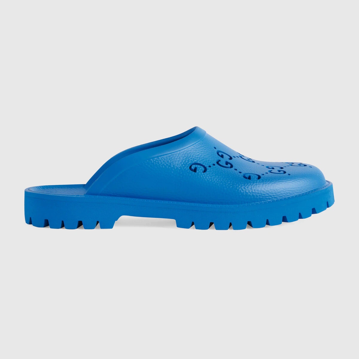 First used in the 1970s, the GG logo was an evolution of the original Gucci rhombi design from the 1930s, and from then it's been an established symbol of Gucci's heritage that evolves each season. Here, the monogram appears as a cut out motif atop these blue rubber sandals. - Bright blue perforated GG rubber - Men's - Rubber platform lug sole - Flat - Made in Italy