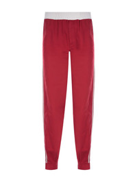 Military cotton drill is constructed into a pair of red jogging pants complete with buckled ankles and vintage Gucci logo patch. The washed tracksuit style brings with it an expansion of possibilities for the Ouverture collection. - Bright red and white washed military cotton drill - Vintage Gucci logo patch - Contrast elastic waistband - Front slash pockets - Back patch pockets with button flaps - Contrast piping down the legs - Adjustable cuffs with metal buckles - Made in Italy - The model is 6'1" tall. The product shown in this image is a size 50 (IT)