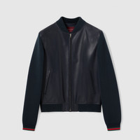 Nappa leather and knit bomber jacket